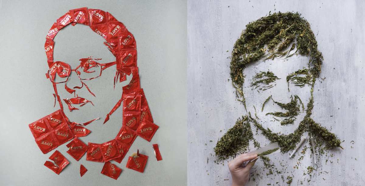 Jolita Vaitkute is a well-known Lithuanian artist for her talent to create artworks from everyday objects & food. These two portraits made back in 2018 were her insight on a political situation in Lithuania and newly (back then) elected government. The artist, in a way, published and expressed her political opinion through these portraits of political 'clowns' Agne Sirinskiene (an official in the government known for being against premarital sex and contraception) and Ramunas Karbauskis (an official in the government who is against the legalization of medical cannabis) who are made fun of and condemned on social media for their stubbornness to listen to people and their needs.