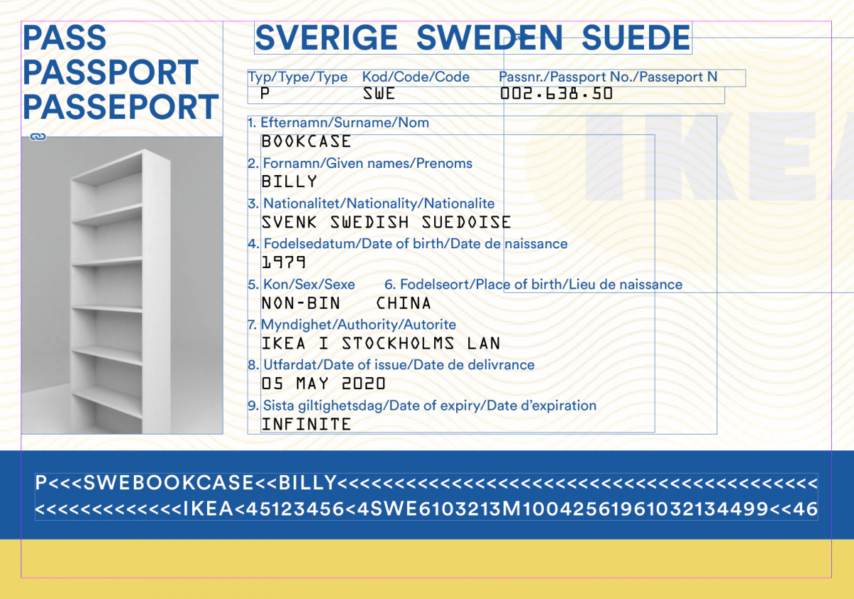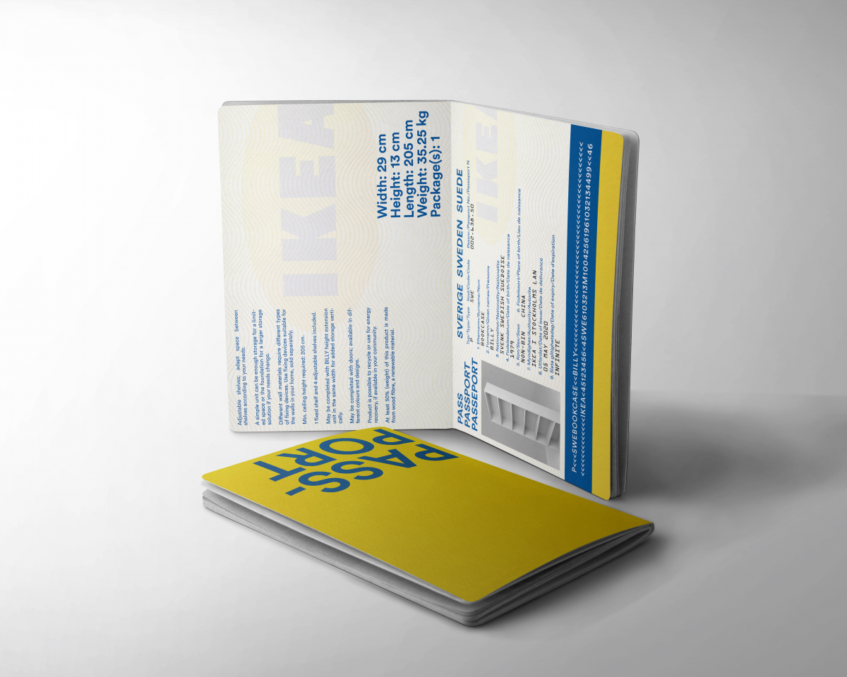 A Swedish passport for the Billy Bookcase, the most popular item of IKEA ever. Designed by Gillis Lundgren in 1979, found in most European households. Traveling around the world and now owning a passport of its own.