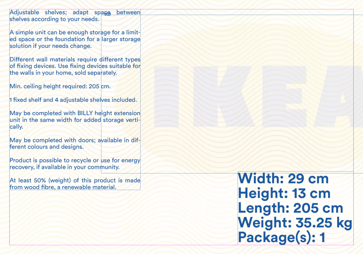 The passport includes original information about the Billy Bookcase - name, origins, measurements, serial number, etc. It is all made using a real Swedish (homeland of IKEA) passport's layout by researching various images. All the information is very real and can be found on IKEA's website.